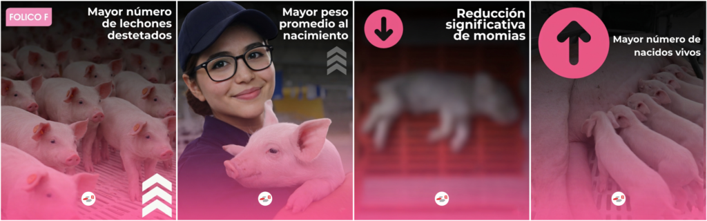 El producto se incorpora en la alimentación de la cerda desde el destete y durante la gestación, con el objetivo de favorecer una mejor homogeneidad de las camadas, mejorar la viabilidad fetal y contribuir a una mayor eficiencia reproductiva del sistema productivo. En términos productivos, este enfoque busca impactar variables clave del desempeño reproductivo, como el número de nacidos vivos, el peso al nacimiento y el número de lechones destetados, factores que determinan en gran medida la rentabilidad de las granjas porcinas.