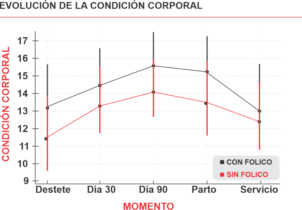 | Variable | Condición corporal al parto | CON FOLICO F® (promedio) |