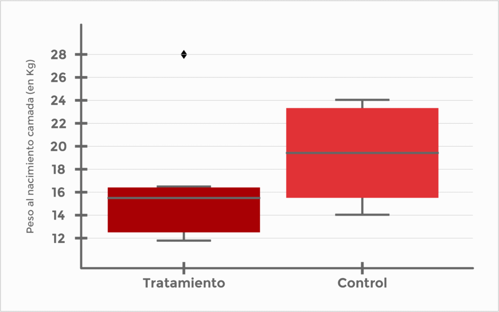 Estos datos, además de ser analizados con pruebas t de Student para la comparación entre grupos, fueron visualizados mediante gráficos de boxplot para observar distribución y dispersión de variables por tratamiento, confirmando así que, al nacer, no existían disparidades intrínsecas en el vigor o el tamaño de los lechones asignados a cada tratamiento.
